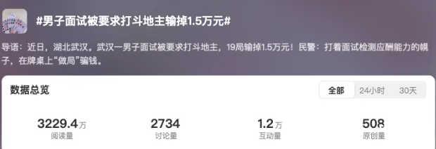 然而,还是年轻了,因为今天的一条关于求职的热搜,直接震碎了三观,碎一地捡不起来那种。热搜的话题是:「男子面试被要求打斗地主输掉1.5万元」