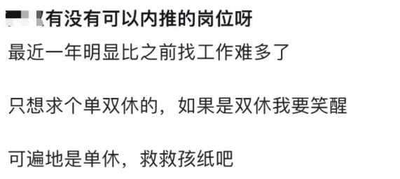 比如前段时间写过的「这届打工人,快把「单休」卷成职场用工标配了……」,不少求职者发现去某招聘平台浏览一遍发现,别人给我们争取来的双休,正在大面积消失……