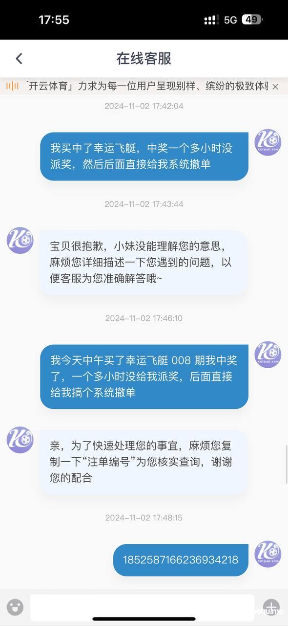 开云集团中奖不派奖,直接下架幸运飞艇,客服一直在敷衍